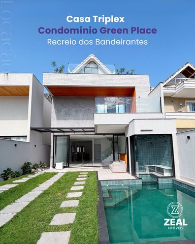 Excelente Casa Triplex no Condomínio Green Place para locação com 3 suítes, com 350m² com a seguinte descrição: Primeiro pavimento : sala com três ambientes, cozinha planejada, lavabo, área de serviço com armário, dependência completa , área gourmet com churrasqueira, sauna e piscina, duas vagas de garagem. Segundo pavimento : 3 suítes sendo 2 com varandas , closet na suíte master e armários planejados nos 3 banheiros. Terceiro pavimento : amplo sótão com varanda e jardins. O Condomínio Green Place oferece portaria e segurança 24 horas, academia, campo de futebol, children care, churrasqueira, espaço gourmet, hidromassagem, horta, jardim, piscina, playground, quadra poliesportiva, sala de ginástica, salão de festas e salão de jogos. Entre em contato com a ZEAL Imóveis e agende uma visita.