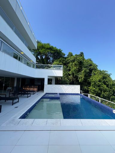 Casa Triplex no Condomínio Interlagos de Itaúna com 4 suítes, moderna de Alto Padrão para locação 380m², com a seguinte descrição: Primeiro pavimento: sala em dois ambientes, lavabo, cozinha com ilha com armários planejados, área de serviço, dependência completa, uma suíte com armários planejados e varanda gourmet com churrasqueira e piscina. Segundo Pavimento: Três suítes (uma revertida em closet) todas com armarios planejados e varandas, a suíte master com acesso a varanda e closet. Terceiro pavimento: sótão dividido em dois ambientes sendo um uma sala de tv, escritório e um banheiro. O Condomínio Interlagos de Itaúna oferece: playground, quadra poliesportiva, portaria e segurança 24h, com localização privilegiada shopping Map Barra, hospitais e supermercado Zona Sul. Entre em contato com a ZEAL Imóveis e agende uma visita.