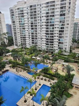 Excelente apartamento mobiliado para aluguel no Condomínio Máximo – Recreio dos Bandeirantes Apartamento mobiliado, localizado no quinto andar, original de quatro quartos, atualmente transformado em três suítes, o que proporcionou uma sala de estar e jantar mais ampla e integrada à sala de TV. A varanda é toda fechada com cortina de vidro e oferece uma vista privilegiada do condomínio. O imóvel conta com cozinha planejada e mobiliário completo da marca Samurai, incluindo armários, mesas, estantes e home theater. Todos os ambientes possuem cortinas e ar-condicionado — de janela nos quartos e split na sala. São quatro banheiros ao todo, sendo três nas suítes (todos com box blindex) e um de serviço. O apartamento dispõe de duas vagas de garagem cobertas, além de estacionamento externo para visitantes e bicicletário. O Condomínio Máximo oferece uma estrutura completa de lazer e segurança, com monitoramento 24h, academia equipada, saunas seca e a vapor com hidromassagem, brinquedoteca, sala de cinema, sala de jogos, espaço gourmet, salão de festas e administração no local. Nas áreas externas, há quatro espaços com churrasqueira, forno a lenha, bancadas em granito, geladeira inox, mesas e cadeiras sob pérgolas. O condomínio também conta com quadra de tênis, quadra poliesportiva, carrinhos de compras e caixas de correspondência individuais com chave. Um imóvel completo, aconchegante e pronto para morar, em um dos melhores condomínios do Recreio dos Bandeirantes.