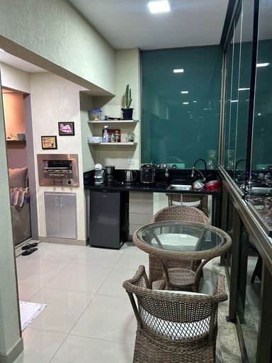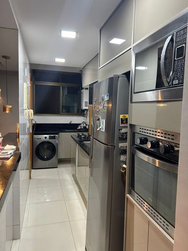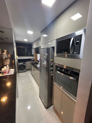 Apartamento todo em piso porcelanato, com teto rebaixado com iluminação de led, 2 quartos sendo 1 suíte com closet e ar condicionado split, sala em dois ambientes com ar condicionado split, banheiro social, cozinha americana com cooktop, forno embutido e com armários planejados, despensa, banheiro de serviço, varanda gourmet ampla fechamento com cortina de vidro e 1 vaga de garagem na escritura.