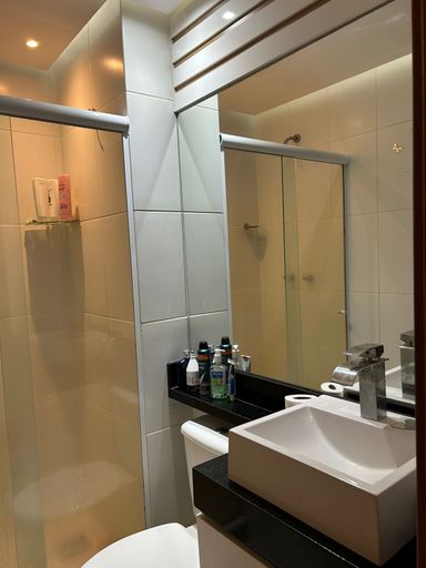 Condomínio com infraestrutura: piscina, sauna, salão de festa, academia, portaria 24h, minimercado, área kids e estacionamento para visitantes.