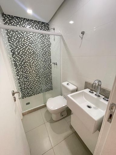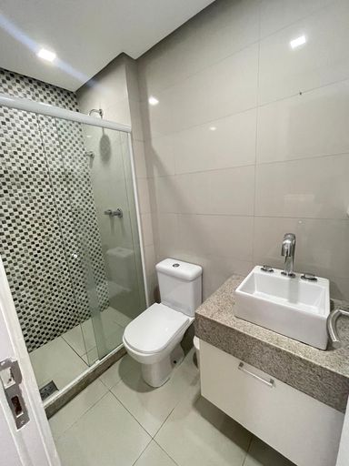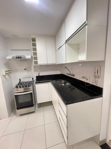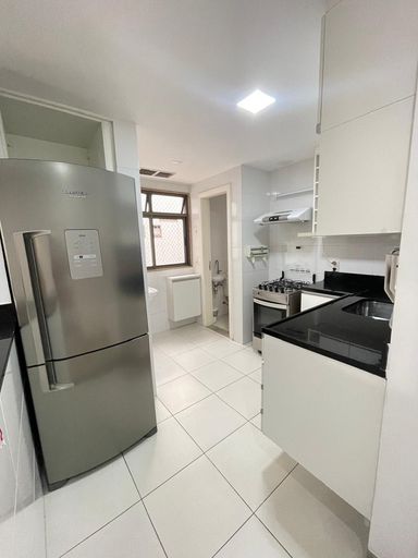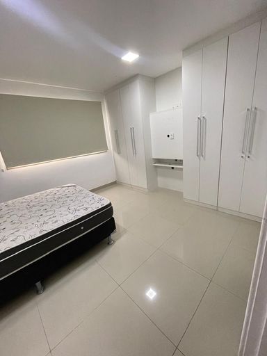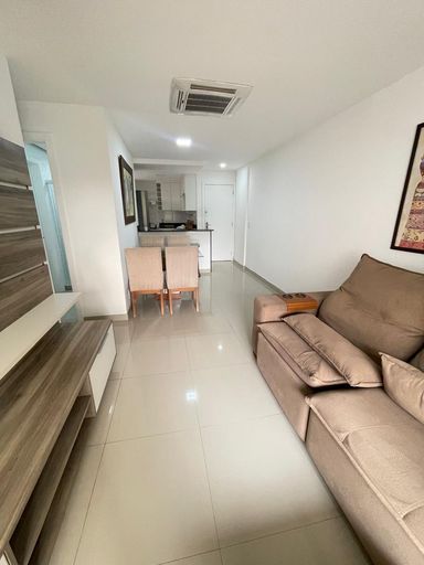 Composto de sala em dois ambientes com ar condicionado, cozinha integrada com armários, varanda com churrasqueira, 2 quartos sendo 1 suíte com armários e ar condicionado.