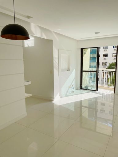 Apartamento para locação no Recreio dos Bandeirantes, no Condomínio Sea Coast, com 2 quartos, sendo 1 suíte, e armários planejados na cozinha e no banheiro. O condomínio oferece segurança 24 horas, serviço de manutenção, arrumação (R$70 por uso, 4 horas, com aspirador e materiais de limpeza fornecidos pelo condomínio, apenas o produto precisa ser do morador), além de aulas gratuitas de dança e hidroginástica. Conta também com academia com personal trainer, lavanderia com opção de passar roupas e restaurante em reforma. Para lazer, possui 2 churrasqueiras, salão de festas, parquinho infantil e piscinas para adultos e crianças. O apartamento dispõe de 1 vaga de garagem e 1 vaga para visitante.