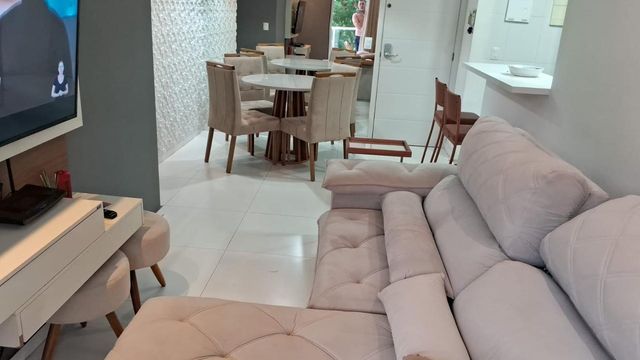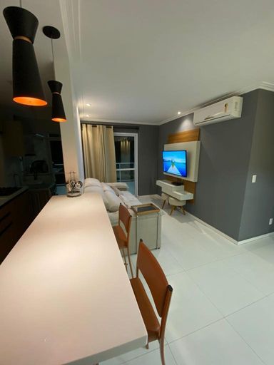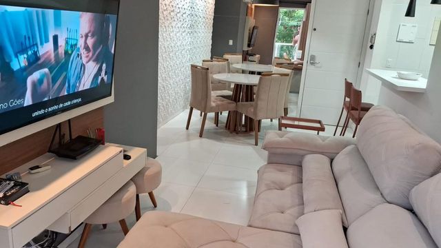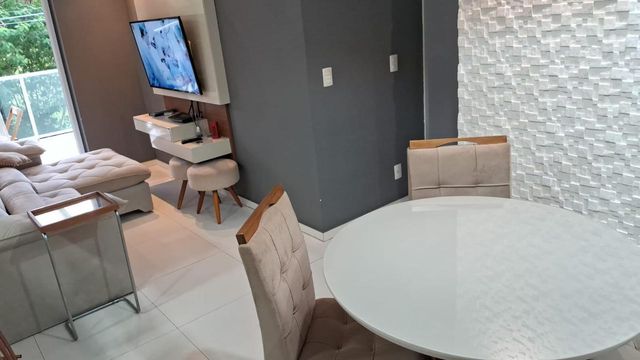 Imóvel com 86m², composto por 2 quartos (sendo 1 suíte), 2 banheiros, sala com rack planejado, mesa e ar-condicionado. Varanda gourmet estendida, fechadura digital, armários planejados nos quartos e cozinha equipada com cooktop e torre quente e 1 vaga de garagem coberta