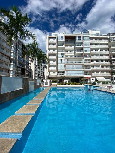 Condomínio com segurança 24h e infraestrutura completa de lazer: academia Rio Sport, piscina aquecida, raia olímpica de 50m, quadra poliesportiva, espaço gourmet, salão de festas, playground e áreas verdes. Transporte exclusivo até o Jardim Oceânico.