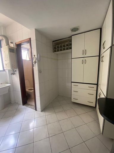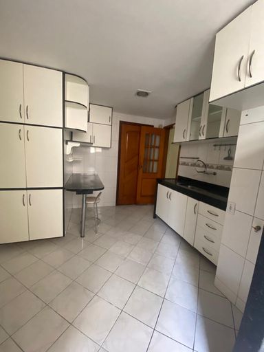 O imóvel conta com 3 quartos (sendo 1 suíte), 3 banheiros, cozinha com armários planejados, e 2 vagas de garagem.