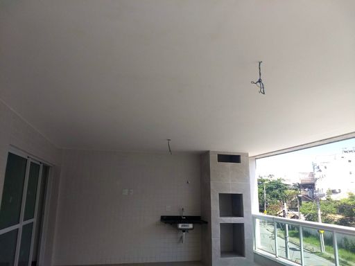 Varanda espaçosa frente com churrasqueira e armário, com vista livre,