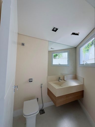 2° Pavimento: Sala de TV e quatro suítes, todas com closet, , salão de banho, com bancada dupla esculpida, banheira de hidromassagem e varanda privativa.
