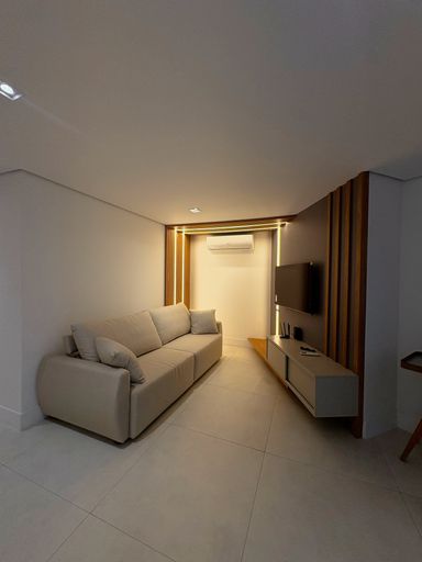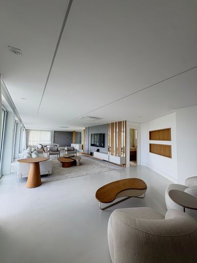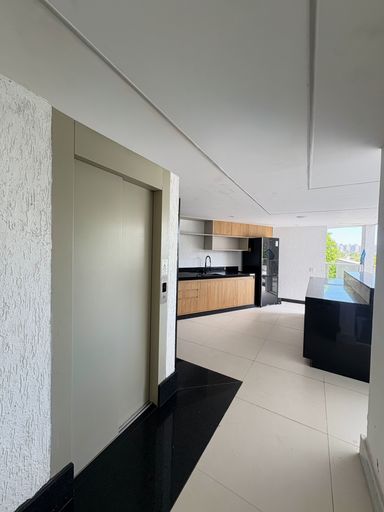 1° Pavimento: Ampla sala, integrada à varanda com vista espetacular, lavabo com bancada esculpida, cozinha espaçosa com armários planejados e eletrodomésticos e despensa.