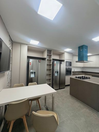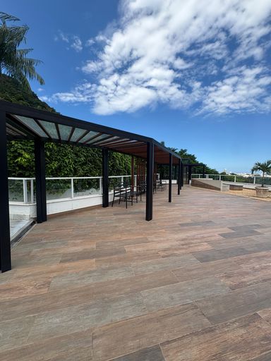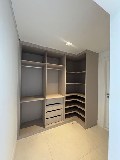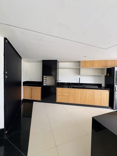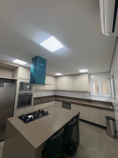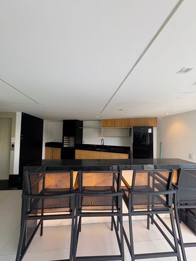 Na área de serviço, lavanderia com armários, duas dependências, banheiro de serviço e copa de apoio.