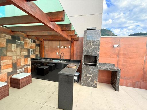 Excelente Cobertura Semimobiliada de Alto Padrão para Alugar no Condomínio Luar do Pontal com a seguinte descrição: Primeiro pavimento: uma suíte com armários planejados e ar condicionado split, sala em dois ambientes, cozinha com armários planejados, área de serviço com aquecedor, banheiro social com armários planejados e blindex e espelho, varanda. Segundo pavimento: dois quartos sendo uma suíte com armários planejados e ar condicionado split, hall social, banheiro social com armário planejado e blindex e espelho, área externa com piscina e churrasqueira e 2 vagas de garagem. Condomínio oferece portaria e segurança 24 horas, com infraestrutura completa: piscina adulto, piscina infantil, playground, brinquedoteca, salão de festas, churrasqueira, home cinema, espaço gourmet, quadra poliesportiva, hidro, espaço banho, sauna seca e a Vapor e academia. O Condomínio Luar do Pontal conta com uma localização privilegiada no Pontal Oceânico no Recreio dos Bandeirantes, garantindo a proximidade com uma das principais vias da região, a Avenida das Américas e com a praia.