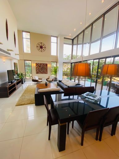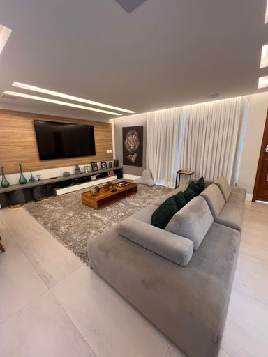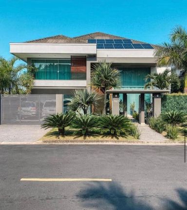 Zeal Imóveis aluga ! Imóvel imponente e finamente decorado, com 900m² de área útil, em dois terrenos unificados (total de 1.350m²). Conta também com projeto de luminotecnia, iluminação solar e ambientes climatizados (ar condicionado central). Composta: amplo salão em três ambientes (incluindo living e área de jantar), lavabo, copa cozinha, área de serviço, despensa e dependência completa. Segundo andar: cinco suítes com closets, sendo a suíte master com salão de banho com hidro, generosa circulação (com estante em toda extensão) que permite acesso a um SPA privativo completo,escritório com varanda (pode ser convertido em suíte). Duas varandas com vista para o jardim. Terceiro andar: sala de cinema, área de jogos, espaçoso salão com bar e adega climatizada, perfeito para eventos e recepções. Lazer: jardim com belíssimo paisagismo, varanda coberta, piscina com bar molhado, sauna com mergulho, área gourmet com churrasqueira, máquina de gelo e geladeira dupla, banheiro de apoio, academia completa, quadra com grade de proteção, além de espaços livre para a criação de outras ambientes ao ar livre. Subsolo: garagem com 10 vagas para automóveis, lavanderia, 2 banheiros, depósito e sala de monitoramento.