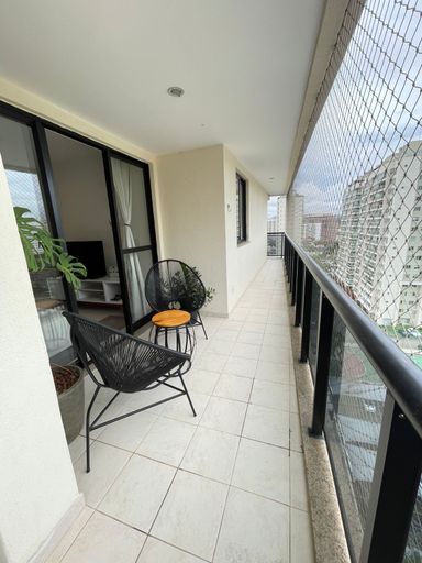 Excelente Apartamento à venda com 3 quartos, 87m² no Condomínio Barra Olímpica com a seguinte descrição: andar alto, sala em dois ambientes com iluminação diferenciada e ar condicionado split, com 3 quartos sendo 1 suíte com armários planejados e ar condicionado split, banheiro social com armários e blindex, cozinha planejada, área de serviço com aquecedor, banheiro de empregada, varanda com vista livre e 2 vagas de garagem. Condomínio com infraestrutura: portaria 24h, piscina, sauna, churrasqueira, salão de festas gourmet, sala kids, playground , mercadinho,
