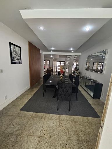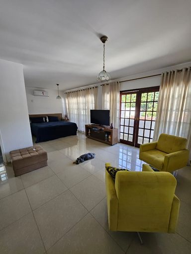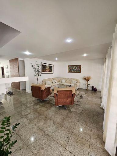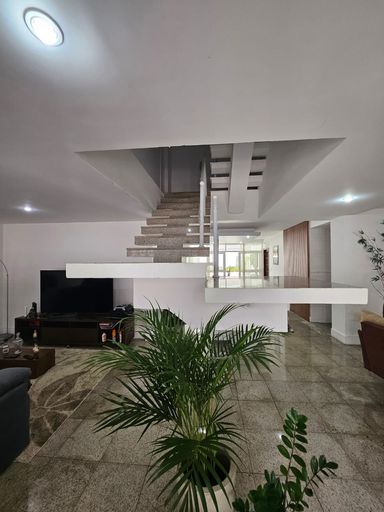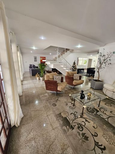 Residência ampla e sofisticada em um dos condomínios mais exclusivos e seguros da região. São 5 suítes, sendo uma no térreo reversível para escritório, todas com closet e varanda privativa. O imóvel conta com sala ampla e iluminada, cozinha planejada com cooktop de indução e lava-louças, além de uma varanda espaçosa e quintal com espaço para pets.
