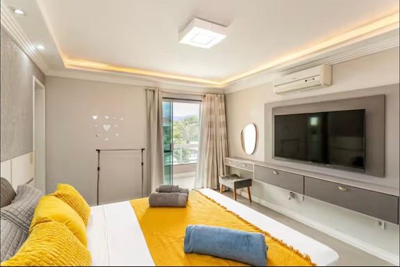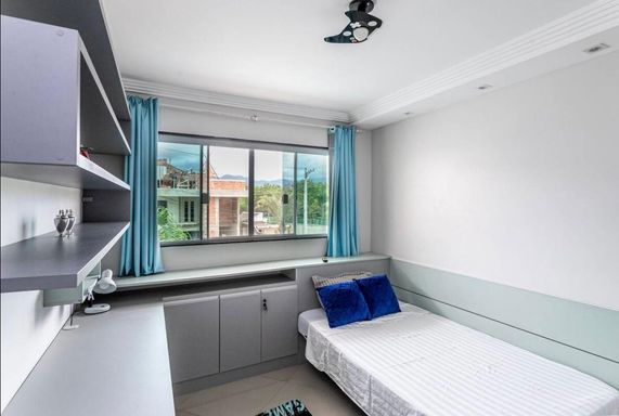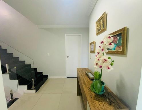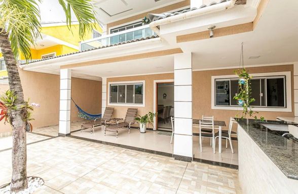 Excelente casa duplex mobiliada para locação no Condomínio Pontal das Américas, no Recreio, com 4 suítes, lavabo, banheiro externo, armários planejados em todos os cômodos, cozinha com bancada e equipada com coifa, ar-condicionado em todos os ambientes, piscina e churrasqueira na área externa. O condomínio oferece segurança 24 horas e uma completa estrutura de comércio, incluindo salão de beleza, barbearia, padaria, mercado, farmácia, açougue, spa, sorveteria, pizzaria, restaurante japonês, outros restaurantes, lavanderia e depósito de bebidas.
