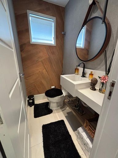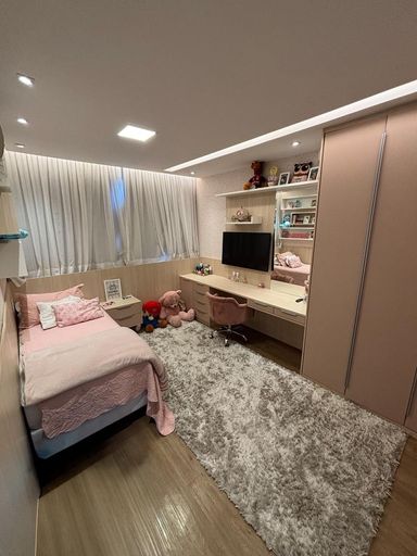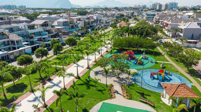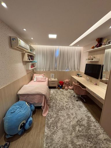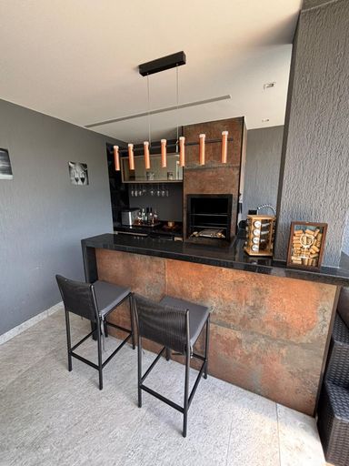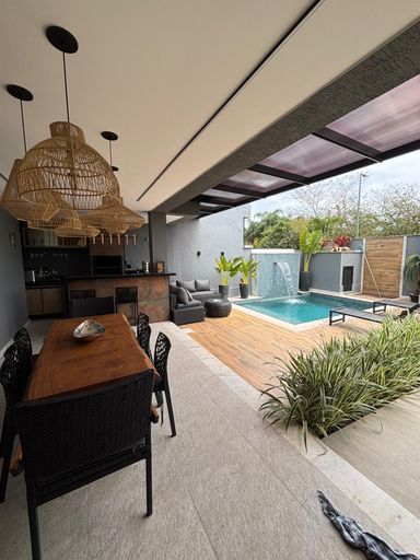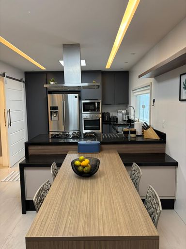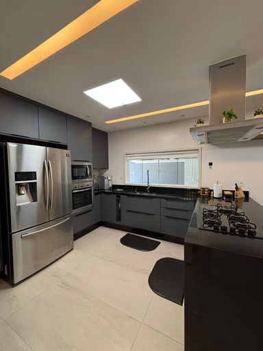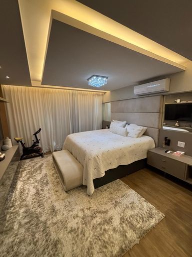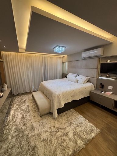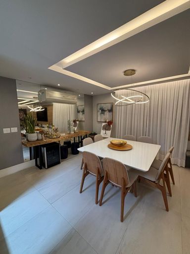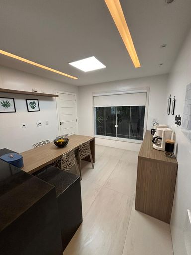 Primeiro pavimento: sala em três ambientes com com ar condicionado, lavabo, cozinha planejada com despensa, lavanderia, dependência de empregada completa. Segundo pavimento: 3 suítes com ar condicionado split, sendo a suíte master com closet e banheiro com chuveiro duplo.
