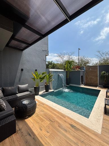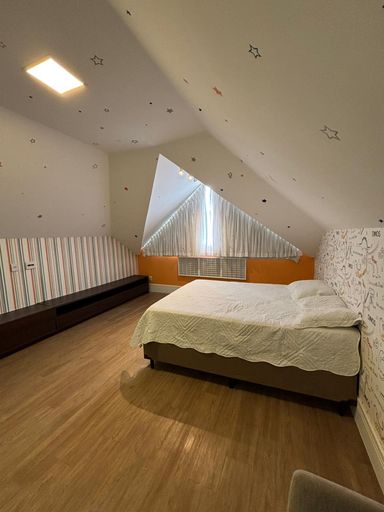 Terceiro Pavimento: sótão com um quarto, escritório e banheiro. Área de lazer privativa: area externa com piscina com prainha, churrasqueira e forno. Condomínio oferece uma excelente Infraestrutura: portaria e segurança 24 horas com monitoramento, campo de futebol, academia, playground e quadra de tênis.