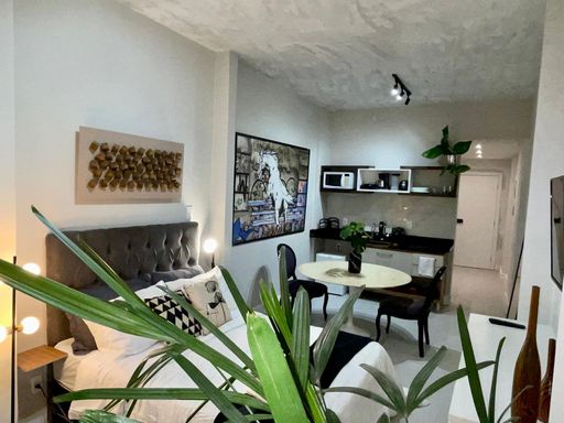 Zeal Imóveis aluga - Apartamento medindo 36m2 composto com 1 Quarto, banheiro social, cozinha com área de serviço, de frente, sol da manhã, andar alto, vista mar, reformado.